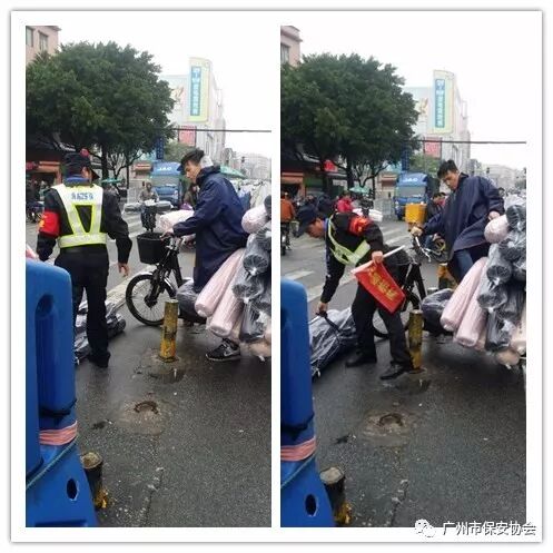 【专题】羊城保安员先进事迹车祸发生汽油泄露,广州经济技术开发区保安服务公司保安员及时现场处置 2018年跨年倒计时活动刚刚进行完半个小时,正在广州国际体育演艺中心执勤的广州经济技术开发区保安服务公司驻科学城大队中队长刘威突然接到展厅班班长程凯的电话,在科学广场西门开泰大道路段发生车祸,驾驶人员逃离现场,路基部分有大量的汽油泄露。 中队长刘威一方面让程凯拨打122报警电话,一方面及时将情况向公司领导及大队长田浩涛上报,并带领中队班长白志强、张德印、魏峰亮、王海锋赶到现场。在事故现场,一部银色的丰田小轿车已经撞得面目全非,路基上的水泥柱子被撞飞两根,小车卡在路灯柱子上,地面遗漏着大量的汽油,随时都有爆炸的可能。 因122报警电话一直都占线,中队长刘威突然想起交警大队领导都在跨年演唱会现场执勤,马上向公司机动大队大队长王立春汇报,并迅速与交警部门取得联系;在科学城大队长田浩涛的安排下,事故现场周边拉起警示带、配备了灭火器等,并安排王海锋、张德印、魏峰亮、程凯、廖监叨等在现场维护,防止路人进入或靠近事故现场,直到交警部门赶到现场处理。 交警大队警察为保安员及时有效的处置方式给予较高评价,在全体人员的通力配合下,事故现场得到迅速清理,也为交警部门查证工作取得了第一手宝贵资料,保安员的工作得到了上级领导的高度评价和赞扬! 广州市海珠区保安服务公司驻中大布场保安员获点赞 2018年1月6日中午,一辆电动车途经中大布匹市场瑞康路口时,车上搭乘的货物在行驶过程中洒落一地。公司直属四大队派驻中大布匹市场中班交通4号岗位的执勤保安员许雪冬恰好看到,心想马路上过往车辆较多,如果不及时处置会造成交通堵塞,于是立即向前帮忙捡起,过往司机和行人纷纷为其点赞。 1月6日晚上,寒雨来袭,凤阳街逸景路凤康路口出现车辆严重拥堵情况,保安员邓喜勇、张健和陈福辉,在来不及穿上雨衣的情况下,现场指挥交通。他们一边疏导交通、指挥车辆通行,一边提醒过往车辆慢速通过和注意行车安全,维持车流、人行秩序。半个小时后,经过三名保安员的努力,道路交通开始畅通起来。保安员冒雨指挥交通的行为受到过往群众称赞,已经冷得瑟瑟发抖的保安员此时心里涌起了阵阵暖流,脸上露出开心的笑容。 广州市地铁保安服务公司保安员协助走失儿童找回家人 2018年1月2日上午,广州市地铁保安服务公司保安员钟冠华、马玉华在一趟往镇龙方向枫下到知识城区间的列车车厢内发现一个小男孩在车厢哭闹,其旁没有家长陪同。经询问了解,小孩没家人带,可能与家人走失,钟冠华马上带小孩就近下车并与知识城站务员联系、寻找其家人。经过保安员和地铁站务员的努力,终于联系到小孩的家人,顺利将小孩接走。 广州市开物保安服务有限公司保安员拾金不昧展美德 2018年1月1日下午,在广州市开物保安服务有限公司驻开发区公园市民广场,一位神色慌张的女士向保安亭正在值班的保安员求助,装有银行卡、购物卡、钥匙等各种重要证件的钱包不小心遗失了。保安班长立即安排巡逻人员协助丢失钱包的市民王女士在广场内寻找。由于当天未能找到失物,保安员甘露热心尽责地告诉市民王女士,先留下联系电话,保安队伍会加大巡逻,继续寻找失物。 幸运的是,保安员甘露在巡查梅花山时,细心地发现了遗失在草丛中的钱包。保安员甘露立即跟当班班长报告此事,将捡到的钱包带回值班室。经过对比确认,此钱包与王女士丢失的钱包描述一致,并通知市民王女士前来领取。 王女士拿到失而复得的钱包,对保安员甘露的拾金不昧、尽职尽责的行为大加赞赏,并于1月6日,送来一面“拾金不昧,甘露当代雷锋”的锦旗,亲自给到保安员甘露的手上,以表示她的感谢并希望弘扬社会正能量。 来源:市保安协会